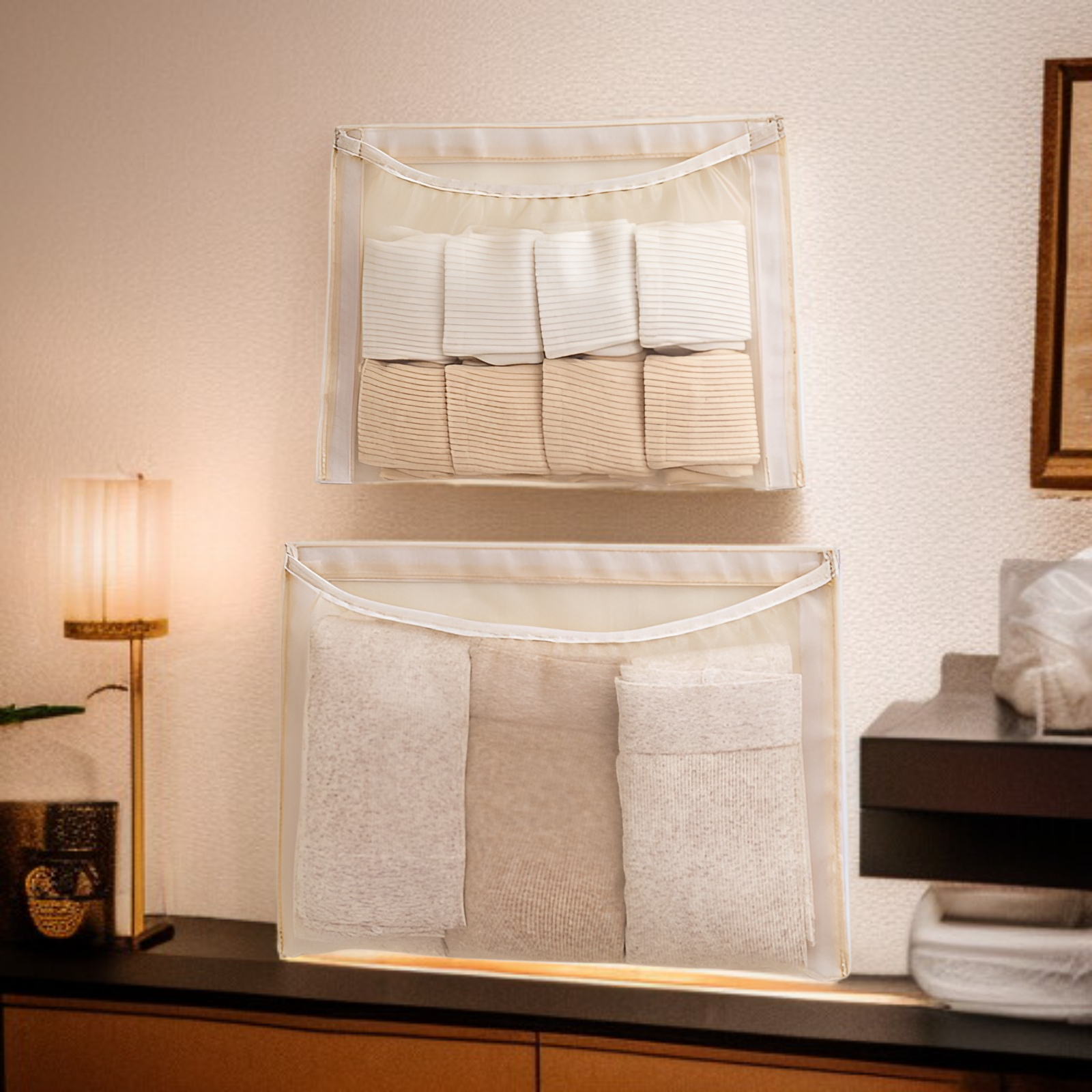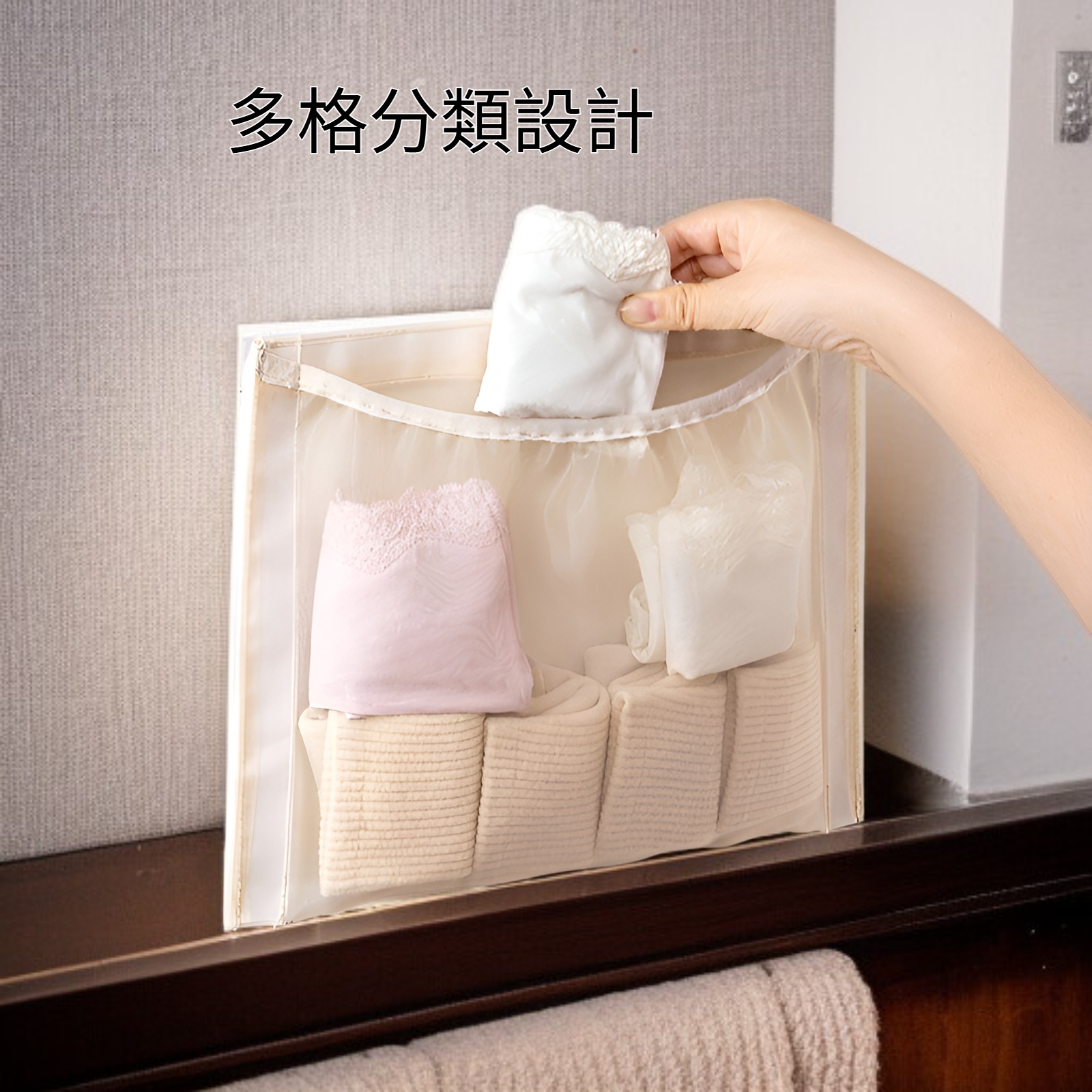 ● 壁掛式設計節省空間,輕鬆收納內衣褲,讓衣櫃更整齊有序,取用方便不凌亂。