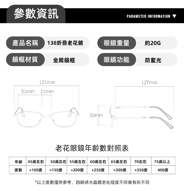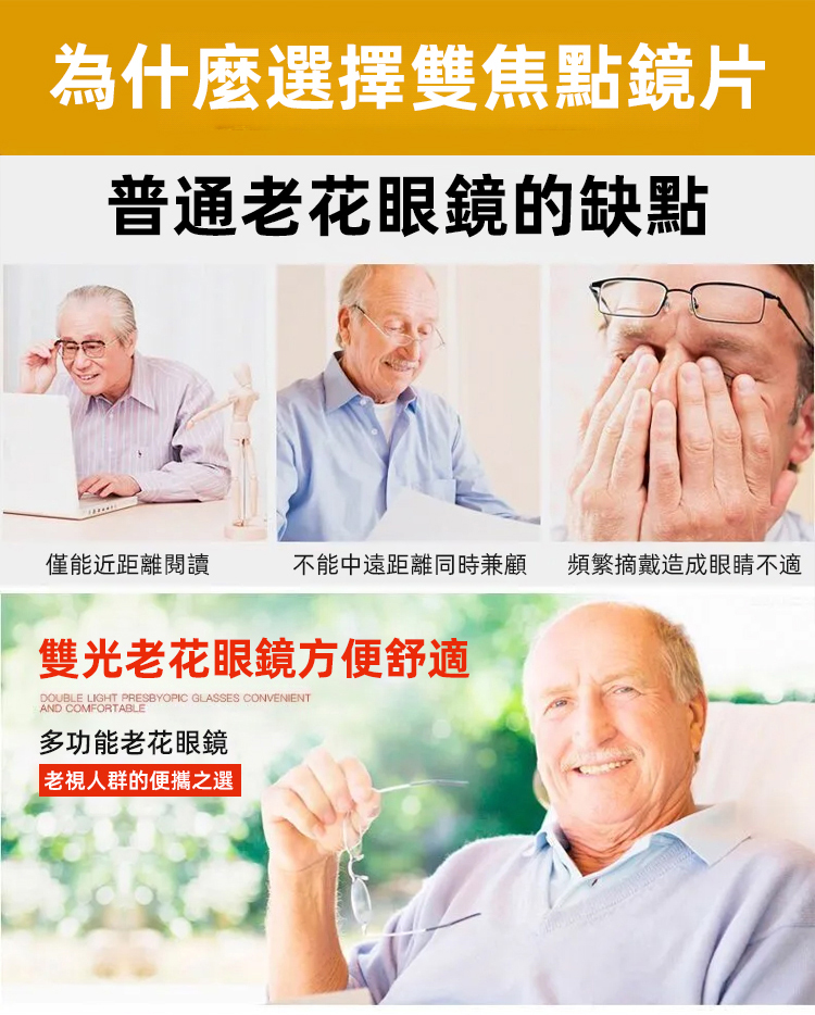 雙焦防藍光折疊老花眼鏡