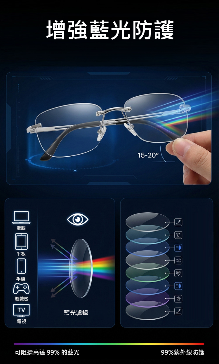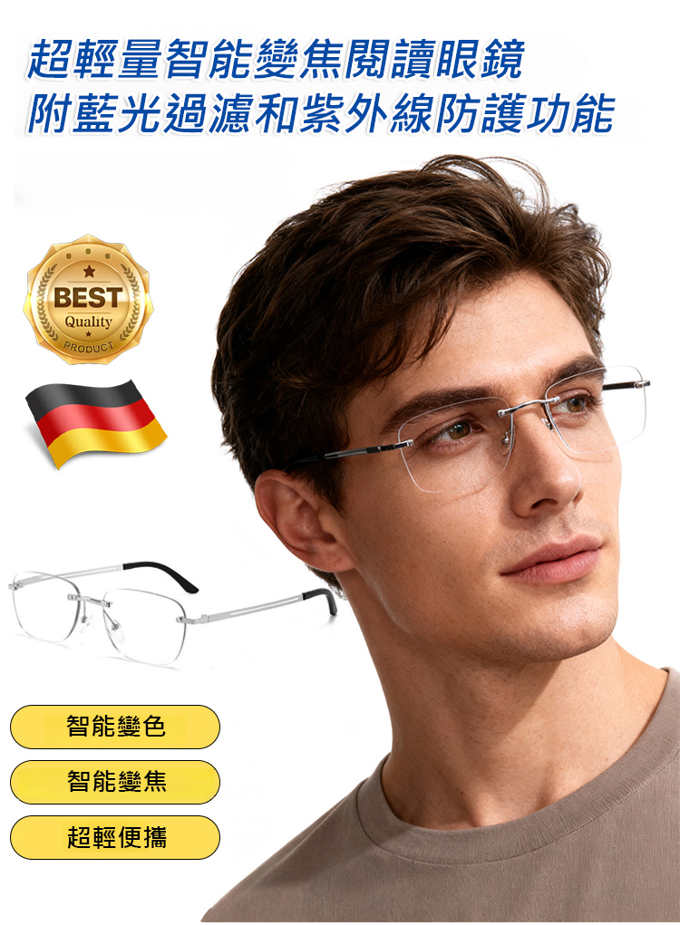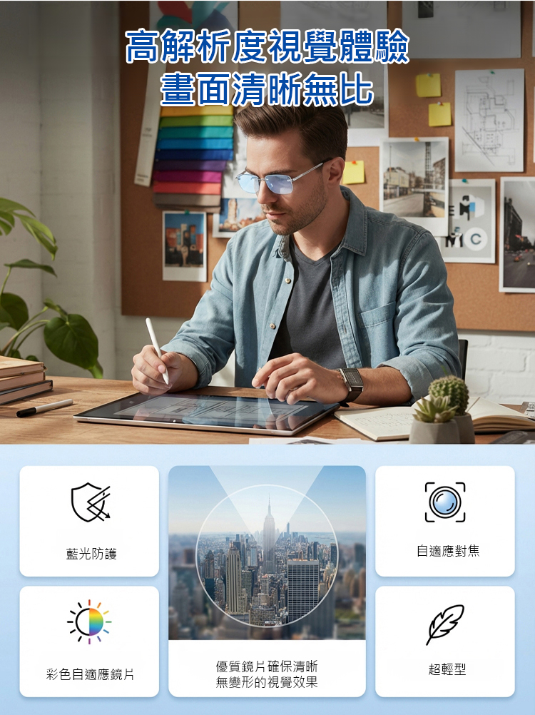超輕量智慧變焦感光變色防藍光老花眼鏡