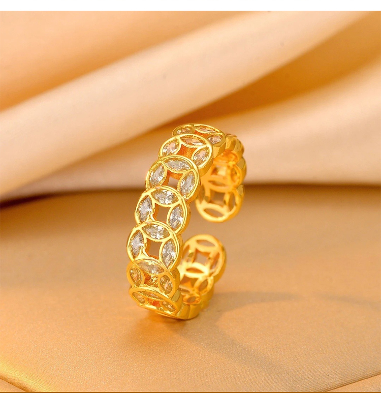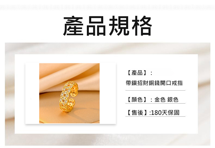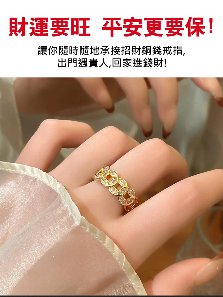 附鑽招財銅錢開口戒指