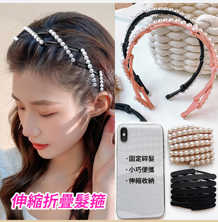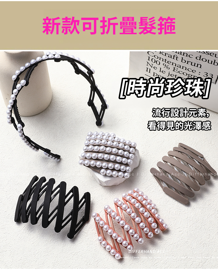 新款珍珠折疊髮箍